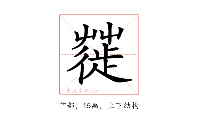 〔𦹼〕字部首是艹部,总笔画是15画。