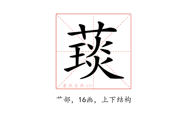 〔𦼓〕字是上下结构,可拆字为“艹、琰”。