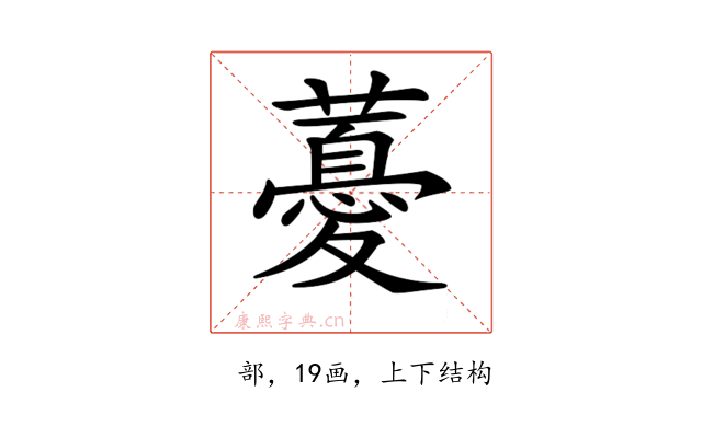 〔𧀥〕字是上下结构,可拆字为“艹、憂”。