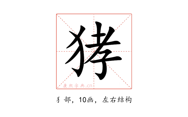 纠错〔㹲〕字拼音是(xiào),部首是犭部,总笔画是10画。