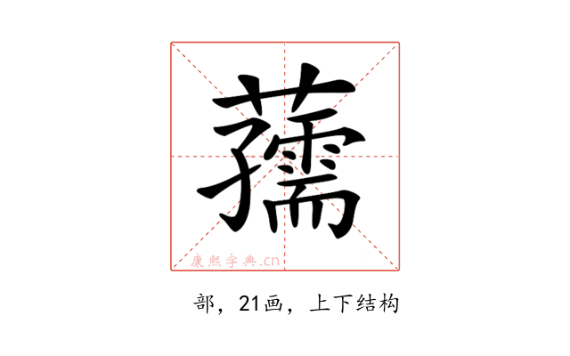 〔𧃨〕字是上下结构,可拆字为“艹、孺”。