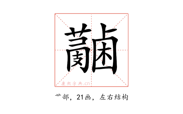 〔𧃭〕字部首是艹部,总笔画是21画。