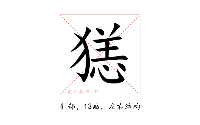 纠错〔㺊〕字拼音是(yàng),部首是犭部,总笔画是13画。