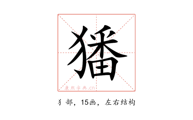 纠错〔㺕〕字拼音是(fán),部首是犭部,总笔画是15画。