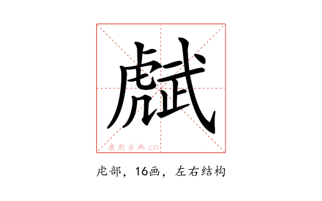 〔𧇭〕字是左右结构,可拆字为“虎、武”。