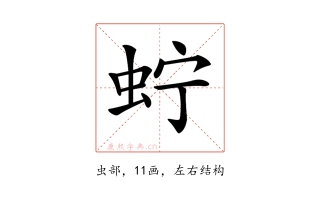〔𧉞〕字是左右结构,可拆字为“虫、宁”。