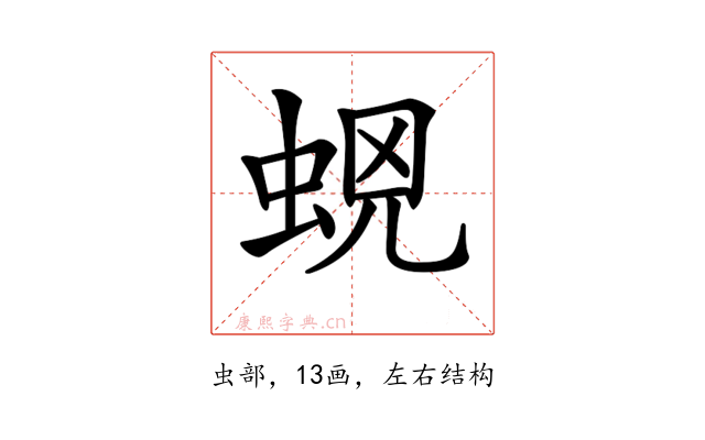 〔𧊫〕字是左右结构,可拆字为“虫、龱、儿”。