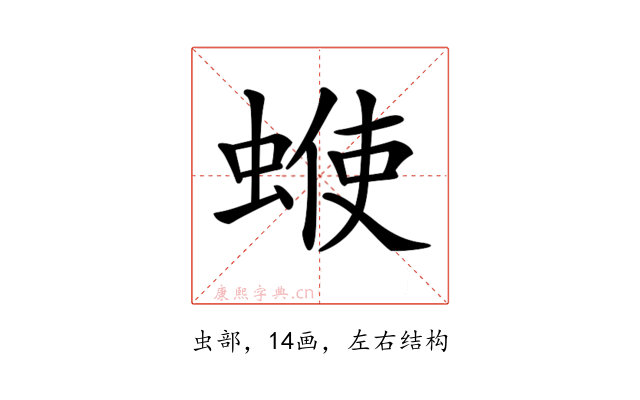 𧍇〕字是左右结构,可拆字为“虫、使”。