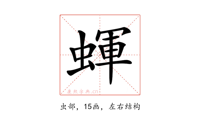 〔𧎊〕字拼音是(huī),部首是虫部,总笔画是15画。