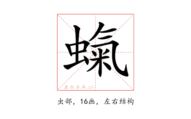 〔𧎵〕字是左右结构,可拆字为“虫、氣”。