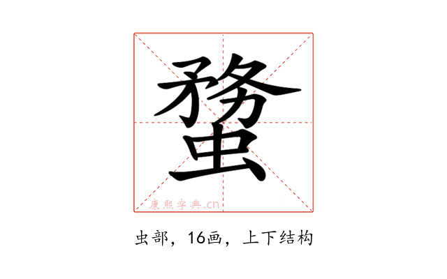 〔𧎻〕字是多音字,拼音是(wù、móu),部首是虫部,总笔画是16画。