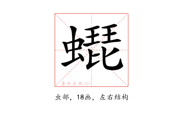 纠错〔𧑜〕字拼音是(pí),部首是虫部,总笔画是18画。
