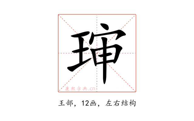 〔㻘〕字是左右结构,可拆字为“王、审”或“⺩、审”。
