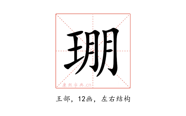 〔㻚〕字是左右结构,可拆字为“王、朋”或“⺩、朋”。