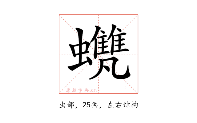 〔𧕺〕字是左右结构,可拆字为“虫、雔、凡”。