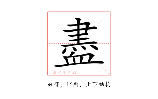 〔𧗊〕字是上下结构,可拆字为“聿、灬、血”。