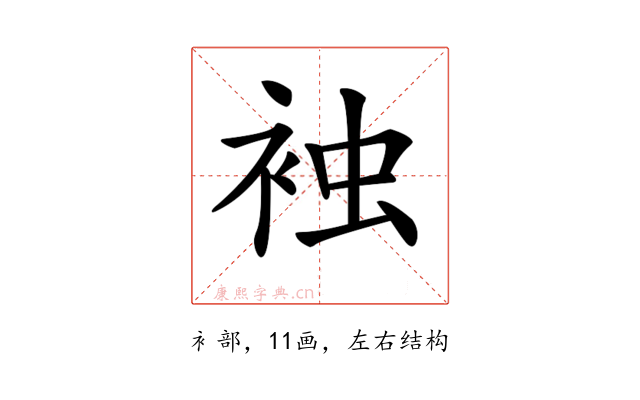 〔𧙽〕字部首是衤部,总笔画是11画。