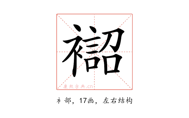 〔𧝨〕字是左右结构,可拆字为“衤、詔”。