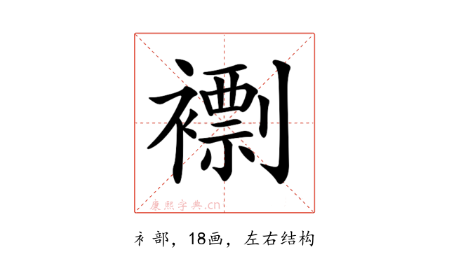 〔𧝼〕字部首是衤部,总笔画是18画。