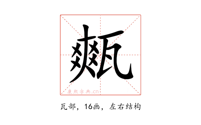 纠错〔㼽〕字是多音字,拼音是(shuǎng、chuǎng),部首是瓦部,总笔画是16画。