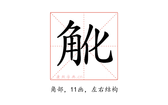〔𧢽〕字是左右结构,可拆字为“角、化”。