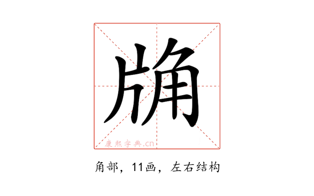 〔𧣉〕字部首是角部,总笔画是11画。