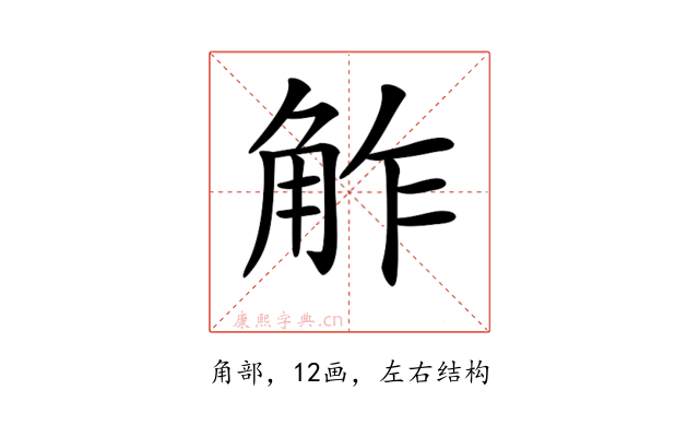 〔𧣝〕字拼音是(jiě),部首是角部,总笔画是12画。