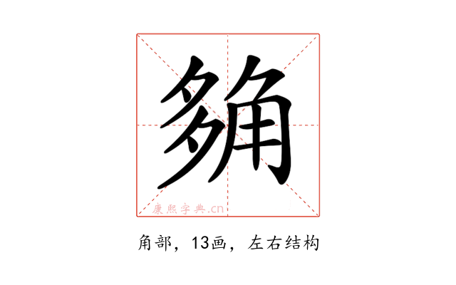 纠错〔𧣡〕字拼音是(gǔ),部首是角部,总笔画是13画。