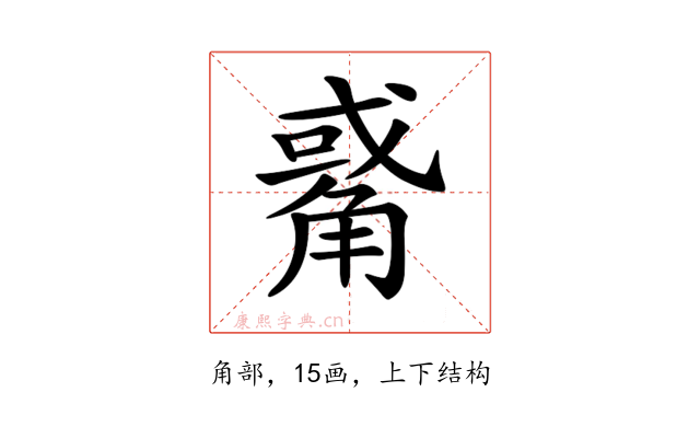 纠错〔𧤅〕字部首是角部,总笔画是15画。