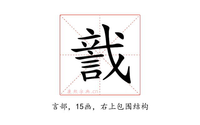 〔𧨺〕字是右上包围结构,可拆字为“戈、亠、丷、言”。