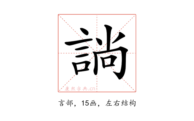 〔𧩡〕字是左右结构,可拆字为“言、尚”或“訁、尚”。