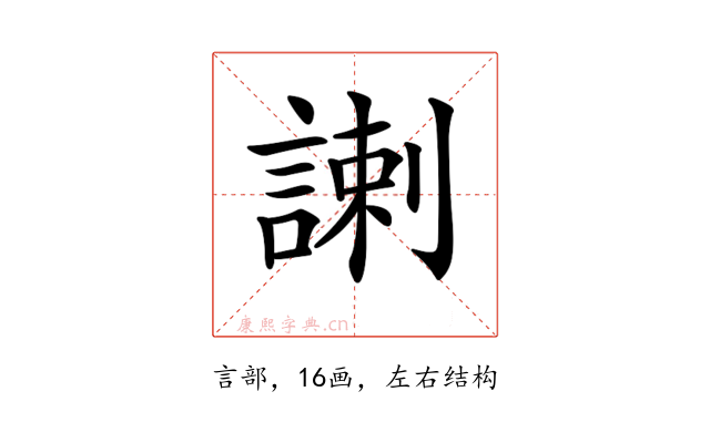 〔𧩲〕字是左右结构,可拆字为“言、剌”或“訁、剌”。