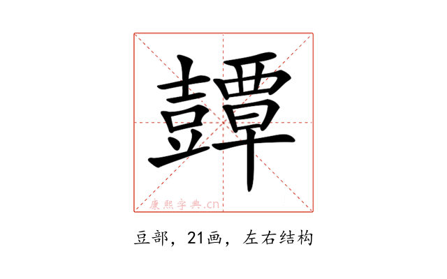 〔𧰘〕字是左右结构,可拆字为“壴、覃”。