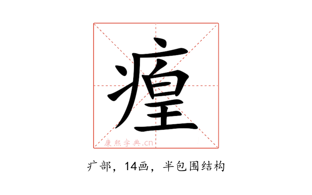 〔㾮〕字是半包围结构,可拆字为“疒、皇”。