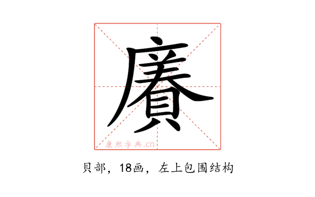 〔𧷫〕字是左上包围结构,可拆字为“广、羌、貝”或“广、𦍌、八、貝”。