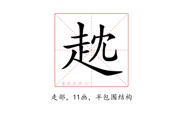 〔𧺟〕字是半包围结构,可拆字为“走、冘”。