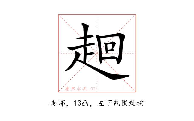 〔𧻢〕字是左下包围结构,可拆字为“走、回”。
