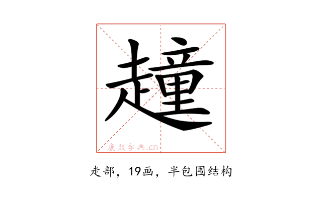 〔𧽿〕字是半包围结构,可拆字为“走、童”。