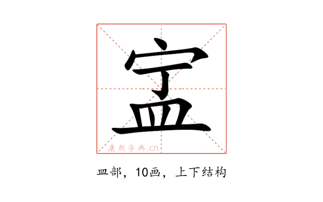 〔㿾〕字是上下结构,可拆字为“宁、皿”。