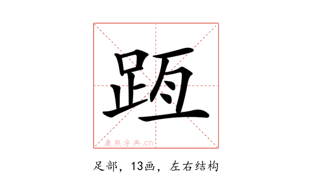 〔𨀿〕字部首是足部,总笔画是13画。