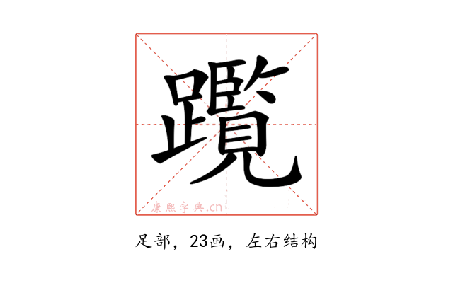 〔𨇣〕字是左右结构,可拆字为“𧾷、覧”。