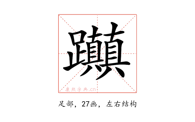〔𨈃〕字部首是足部,总笔画是27画。