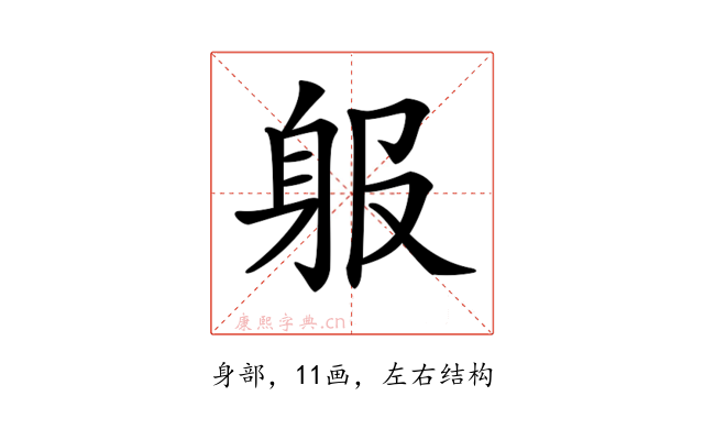 〔𨈞〕字部首是身部,总笔画是11画。