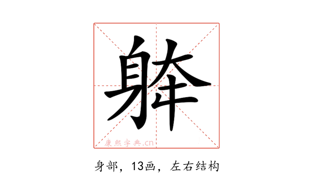 〔𨉀〕字是左右结构,可拆字为“身、𡗢”。