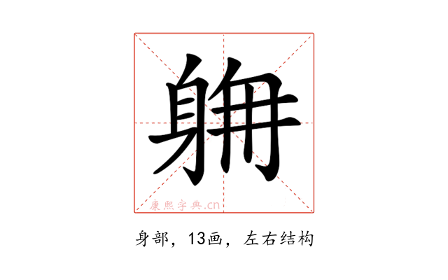 〔𨉄〕字部首是身部,总笔画是13画。
