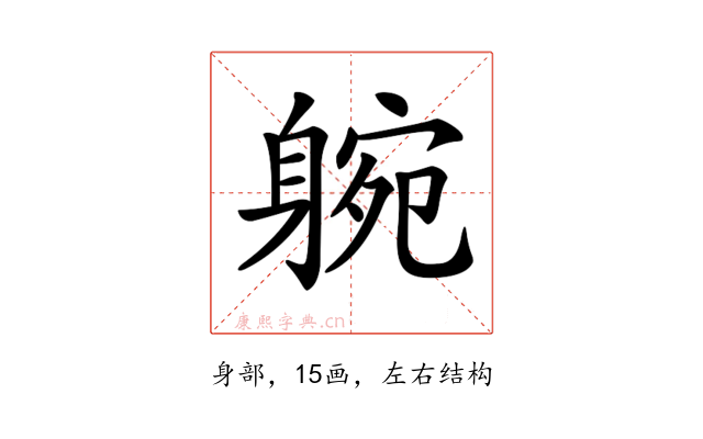 〔𨉝〕字拼音是(wān),部首是身部,总笔画是15画。