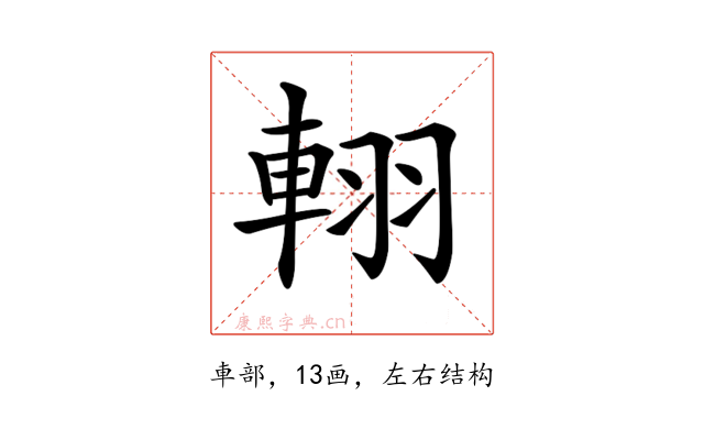 〔𨋾〕字是左右结构,可拆字为“車、羽”。