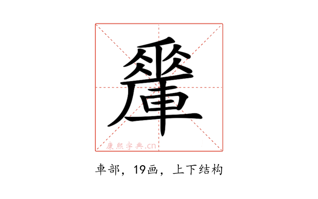 〔𨎯〕字部首是車部,总笔画是19画。