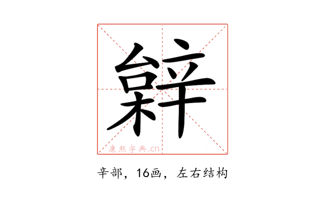 纠错〔𨐠〕字部首是辛部,总笔画是16画。
