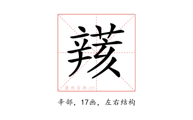〔𨐮〕字部首是辛部,总笔画是17画。